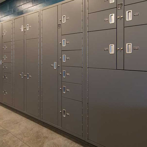 The high-bay evidence storage system eliminates wasted space and provides room to grow in the future. And Pass-through evidence lockers help maintain a secure chain of custody between drop-off and processing.